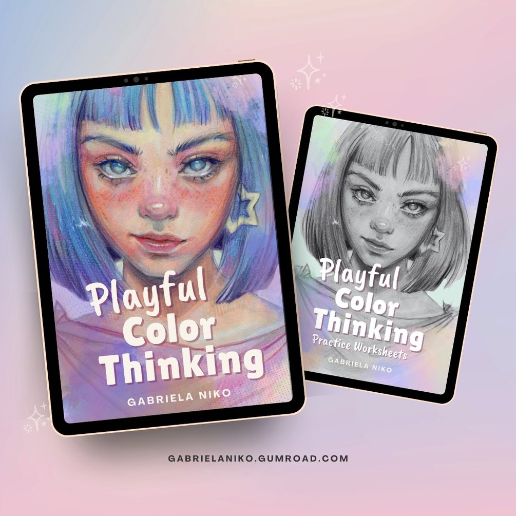 "Playful Color Thinking" E-Book, printable Practice Worksheets and coloring pages, files for digital coloring, custom Procreate color palettes